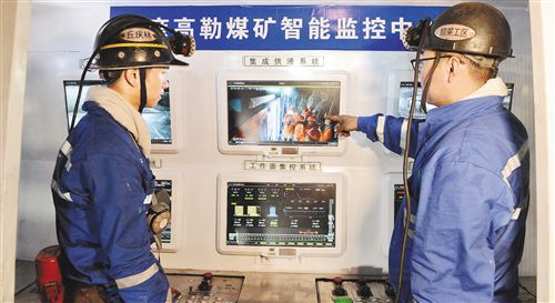 在山東能源淄礦集團巴彥高勒煤礦綜采工作面智能化集控中心,6臺防爆電腦清晰顯示著工作面所有支架的壓力及狀態、采煤機的運行參數、煤壁及支架視頻影像。它與地面集控中心的顯示器相連,可以在地面控制井下300米長工作面上的所有設備。職工“礦三代”趙昌圣點動鼠標,屏幕中采煤機滾筒迅速打開噴霧,連接運輸機的順槽皮帶輸送機也隨之運轉起來,隨著采煤機的推進,滾滾“烏金”順著順槽皮帶經主井提升到地面。